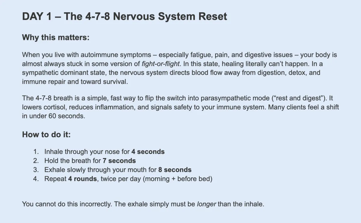 Important note for clarity: This personalized plan is not guaranteed to completely reverse your symptoms on its own, as autoimmune diseases are complex and often require lab testing to fully resolve symptoms. What this plan does reliably is help you identify your main root causes and efficiently reduce your symptoms in the next 2-4 weeks and beyond.